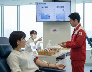 特に、献血後に急に立ち上がったりすると、脳への血流が一時的に不足し、めまいや吐き気、失神といった「血管迷走神経反応(VVR)」と呼ばれる症状を引き起こすことがあります。これを予防するためには、十分な休息と水分・糖分の補給が極めて重要です。